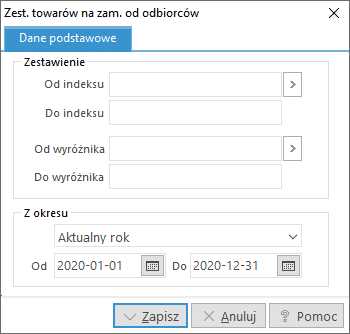 Opcje zestawień sprzedaży i zakupu umożliwiają analizę obrotu towarowego w zadanym okresie, dla określonej grupy towarów oraz dla wybranego kontrahenta. Tworzenie zestawienia rozpoczynamy od określenia zakresu danych uwzględnionych na zestawieniu.
